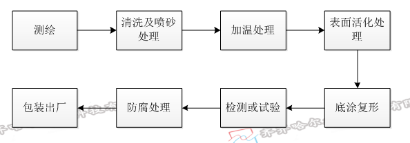 (1)將所有要進行修復(fù)防腐作業(yè)表面進行清洗預(yù)處理,將所有污物沖洗干凈。