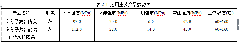 (2)高分子顆粒陶瓷是一種雙組份、填充陶瓷小顆粒、高性能表面涂層材料,主要成分是碳化硅、金屬碳化物和超硬陶瓷,具有良好的耐磨蝕和腐蝕性能,作為耐磨蝕和耐腐蝕保護涂層被廣泛的應(yīng)用于各種化工設(shè)備及通用設(shè)備。適合應(yīng)用于灰漿泵、水泵、風(fēng)機、水輪機蝸殼、凈化煙道、氧化鋁粉輸送管道等內(nèi)壁防腐耐磨局部或大面積修復(fù)。